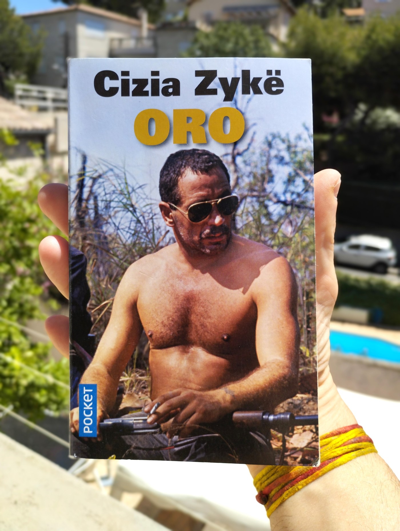 Je m’étais promis de m’y plonger, puis j’ai fini par oublier. Jusqu’au jour où, pris d’une soudaine envie de voyage, je suis retombé sur la couverture de Oro à l’occasion d’une recherche de lecture. Un portrait de Zykë dans toute sa simplicité : moustache à la Freddie Mercury, torse nu, velu et musclé par l’effort du quotidien, clope au bec et carabine dormant sur les genoux. Un choix de couverture qui, si l’on ne se donne pas la peine de lire le synopsis, peut dérouter le potentiel lecteur.